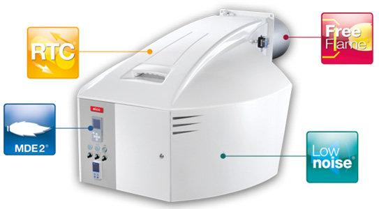 用于清油和雙燃料燃燒器,Free Flame煙氣內循環(huán)燃料快速氣化;當燃油氣化,它被控制在燃燒頭外30厘米的位置開始穩(wěn)定燃燒。